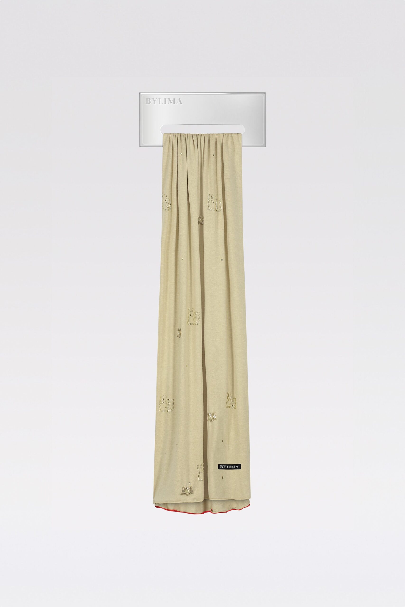 The ‘SKAFOS’ scarf is made from stretchy cotton fabric, this scarf offers comfort and breathability, making it for any season. Its delicate stretch ensures a perfect drape. Detailed with our signature logo, adorned with shimmering stones and crystal beads, placed by hand to create a stunning visual effect. Blending comfort and detail.